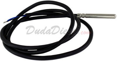 TheRTS (Resistance Temperature Sensor) pt1000 sensor is compatible with high-temperature applications, typically for use in solar water collectors where temperatures may exceed 100°C. Duda Solar manifolds have a sensor port which this sensor easily slides into.
